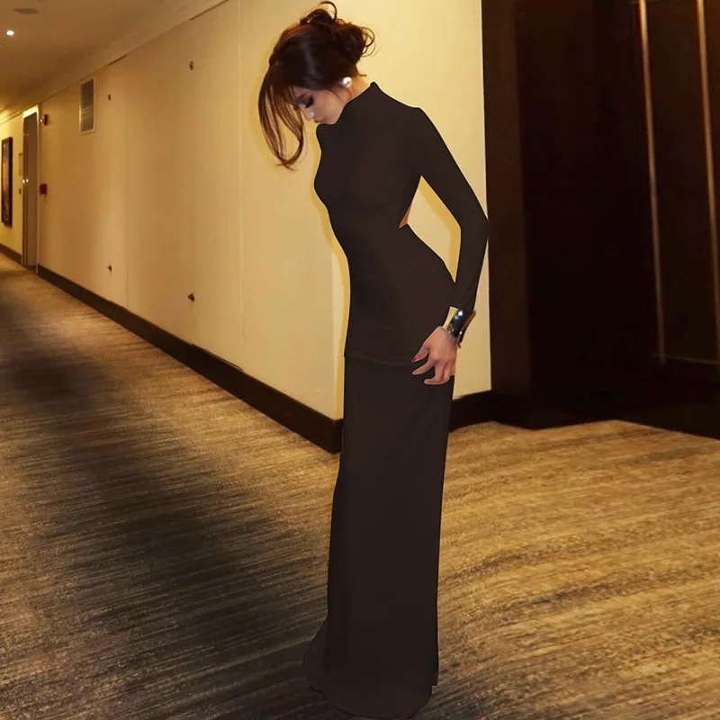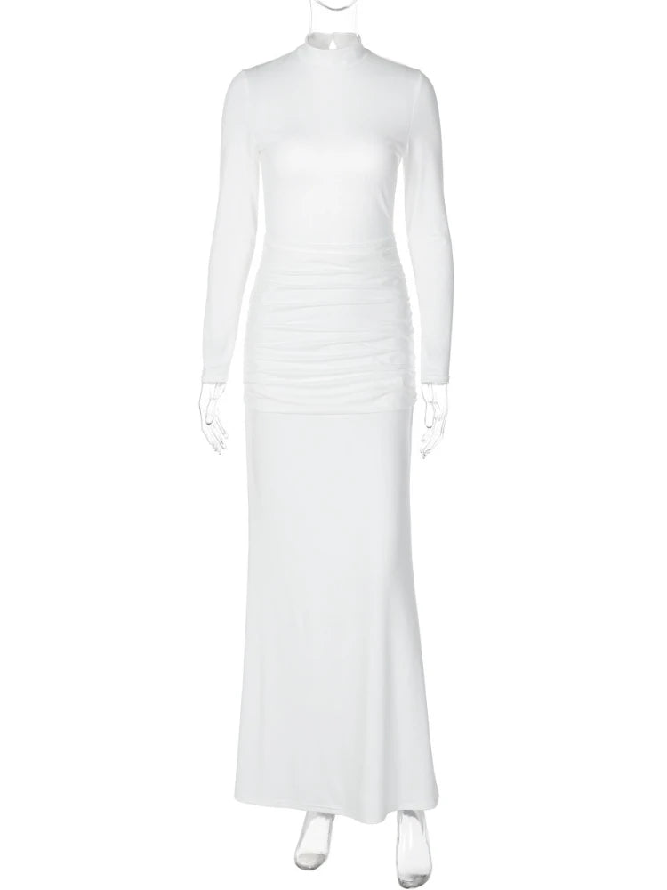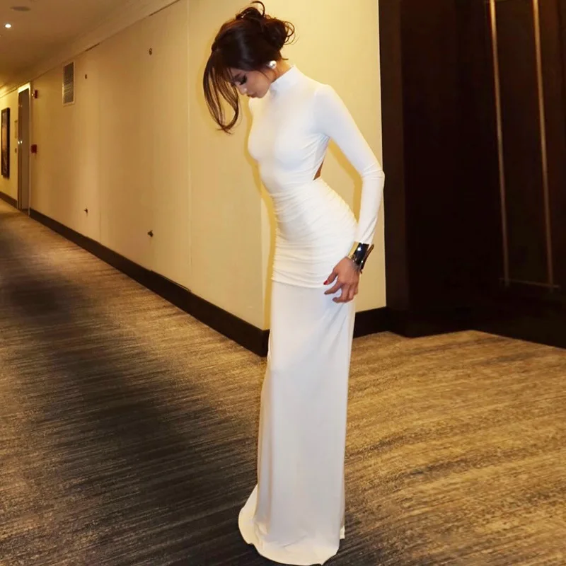 Elegant Backless Long Party Dresses for Women 2025 Autumn Long Sleeve High Waist Bodycon Tunics Folds Maxi Evening Prom Dress