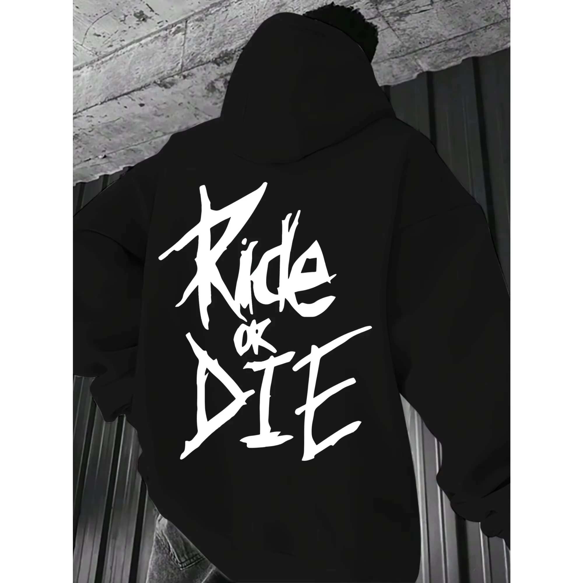 Hip Hop Long Sleeve HoodieHip Hop Long Sleeve Hoodie Men’s Hoodie with Ride or Die Letter Print Graphic Oversized Pullover