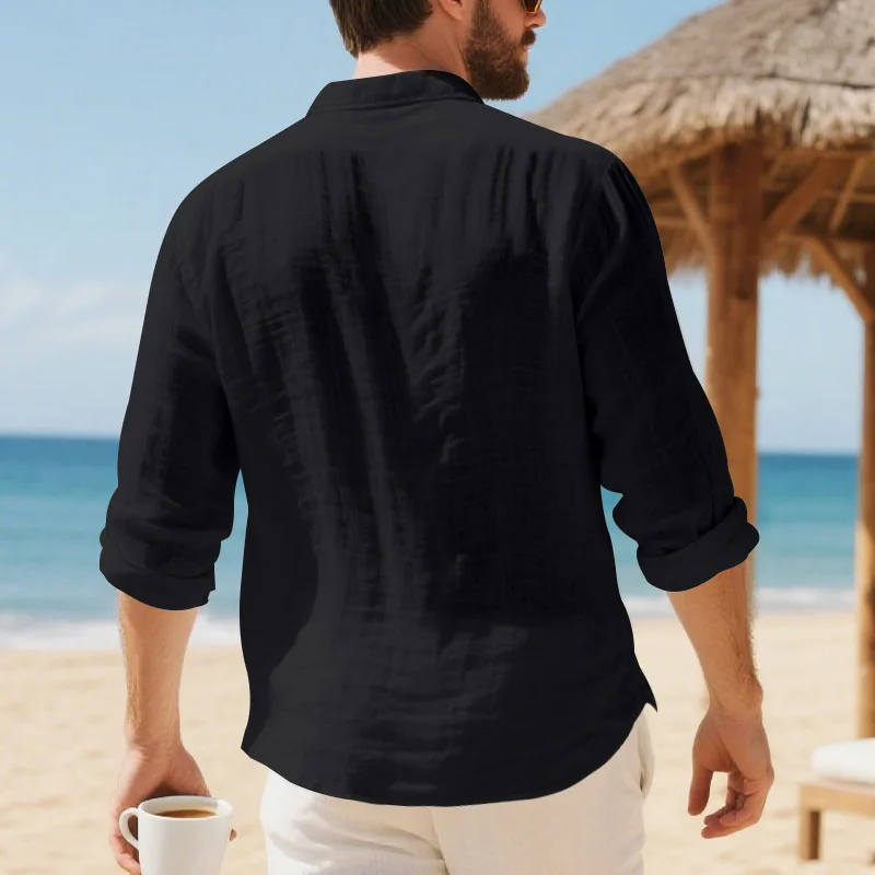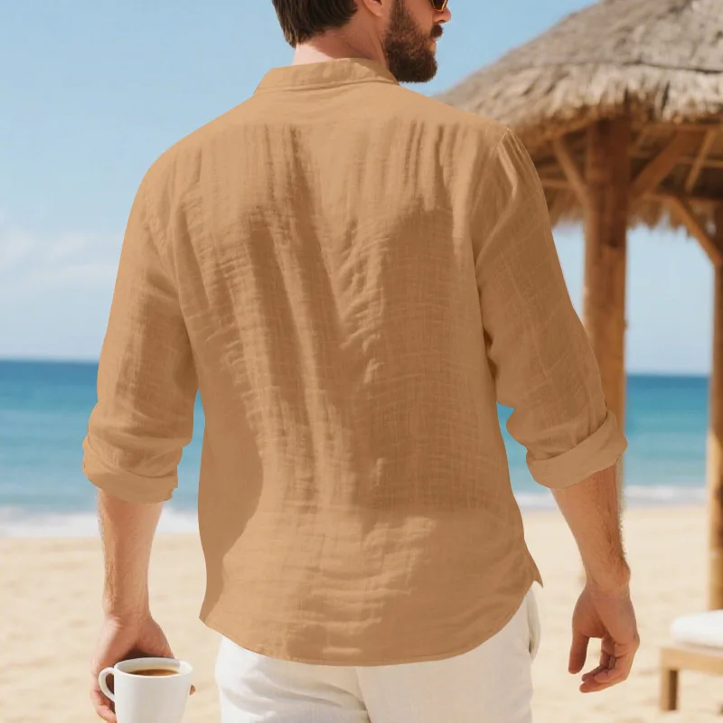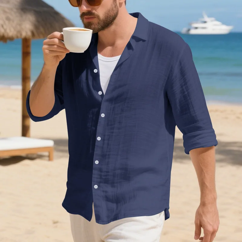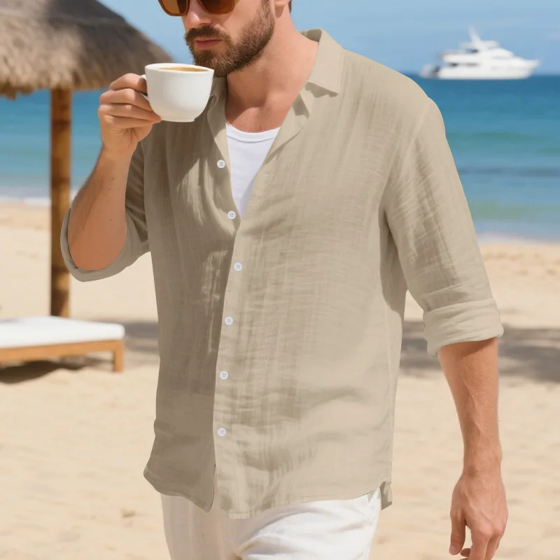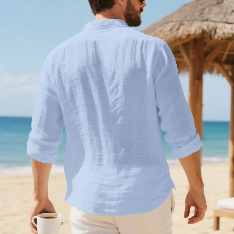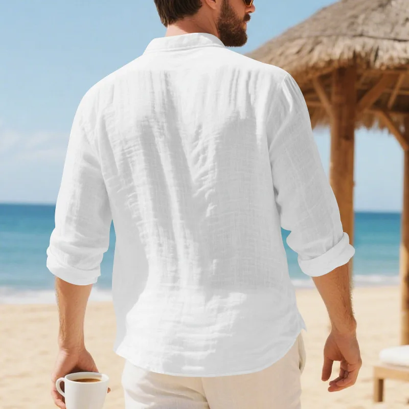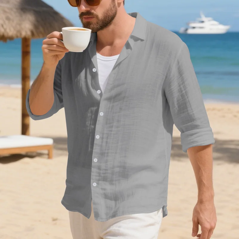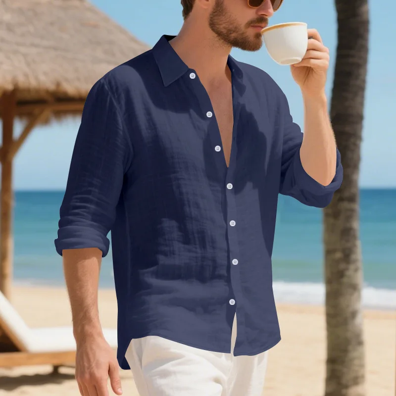 Crafted from pure linen, this shirt offers breathability and comfort for daily wear.