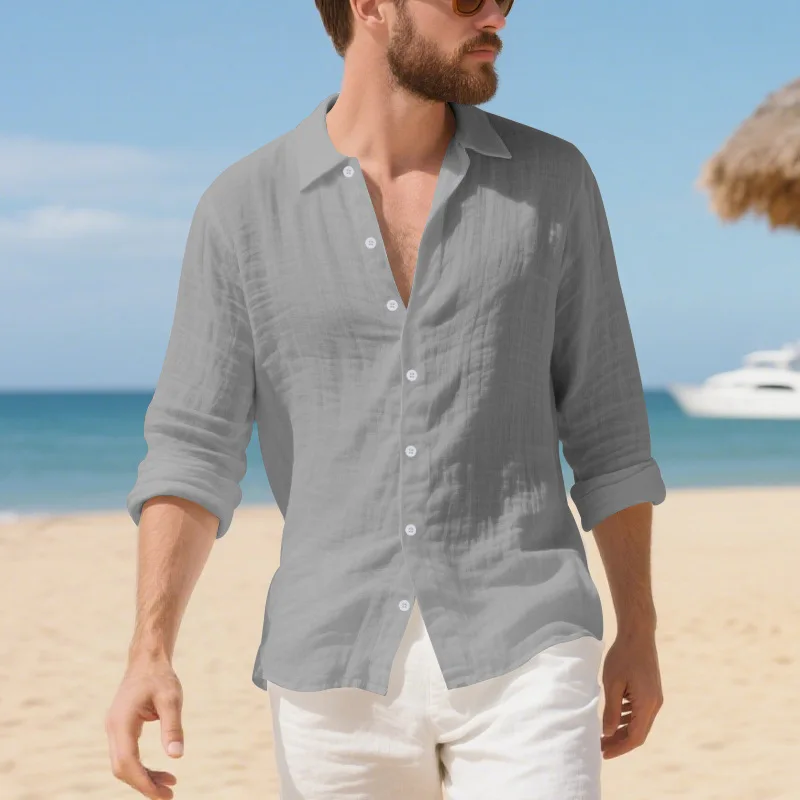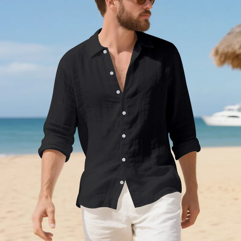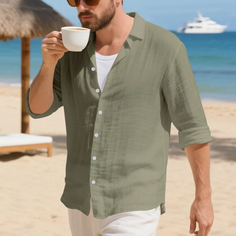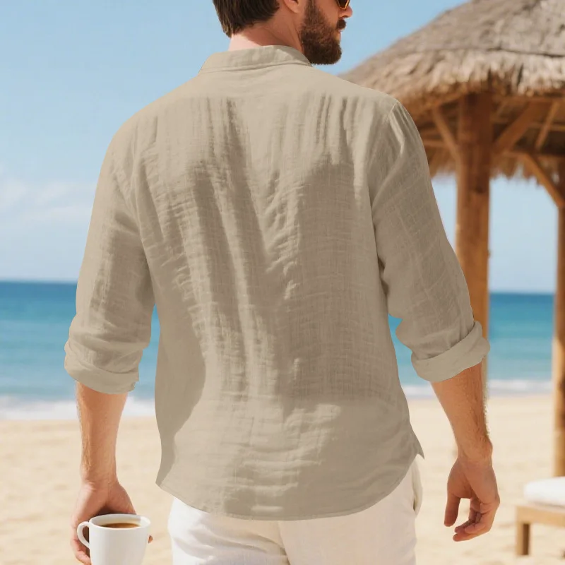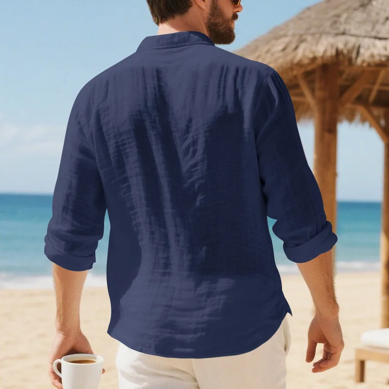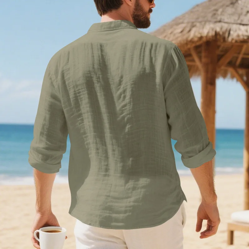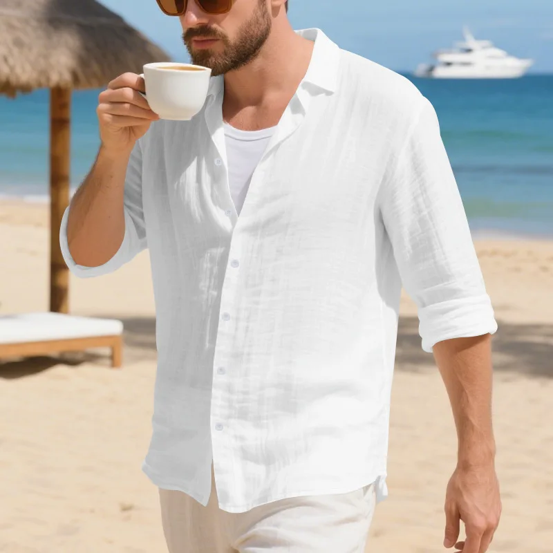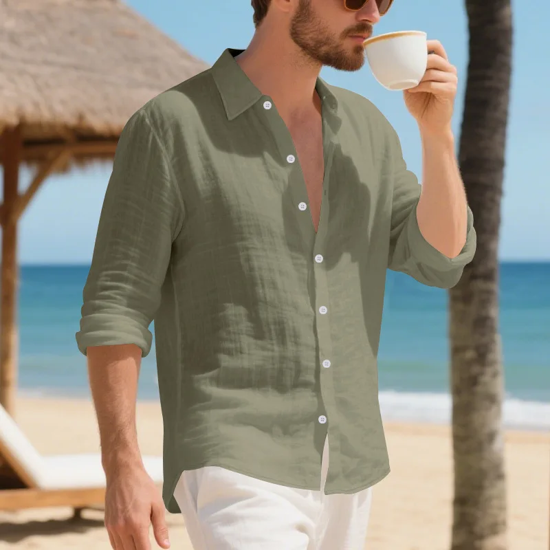 Crafted from pure linen, this shirt offers breathability and comfort for daily wear.