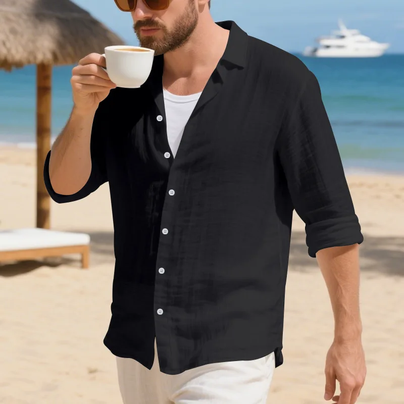 Men's fall outfits for daily wear Men's linen American loose Hawaiian casual long-sleeved button-down lapel shirt
