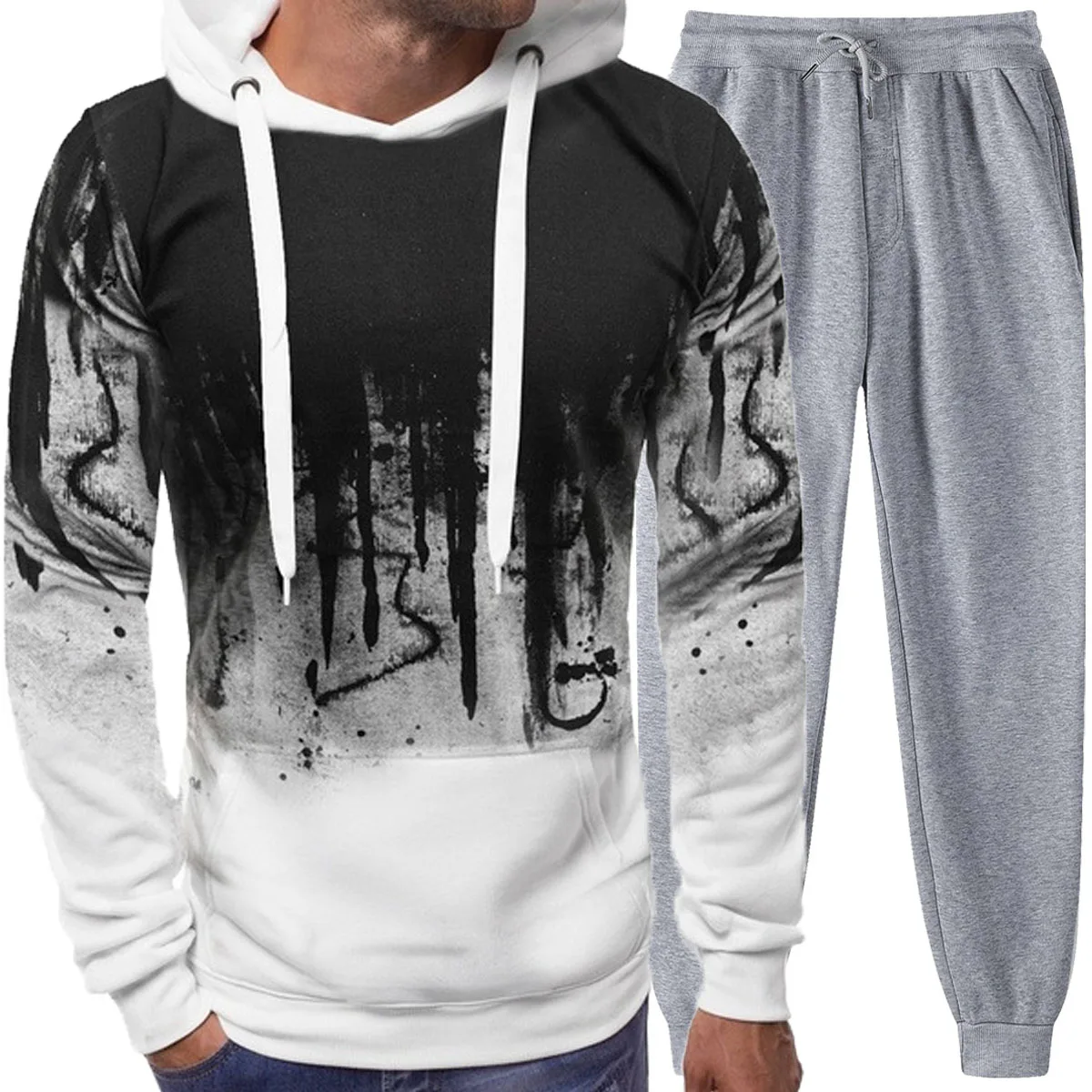 Men's Graffiti Print Hoodie And Pants Tracksuit Set 2025 Autumn And Winter Cotton Casual Sportswear Streetwear Jogging Suit