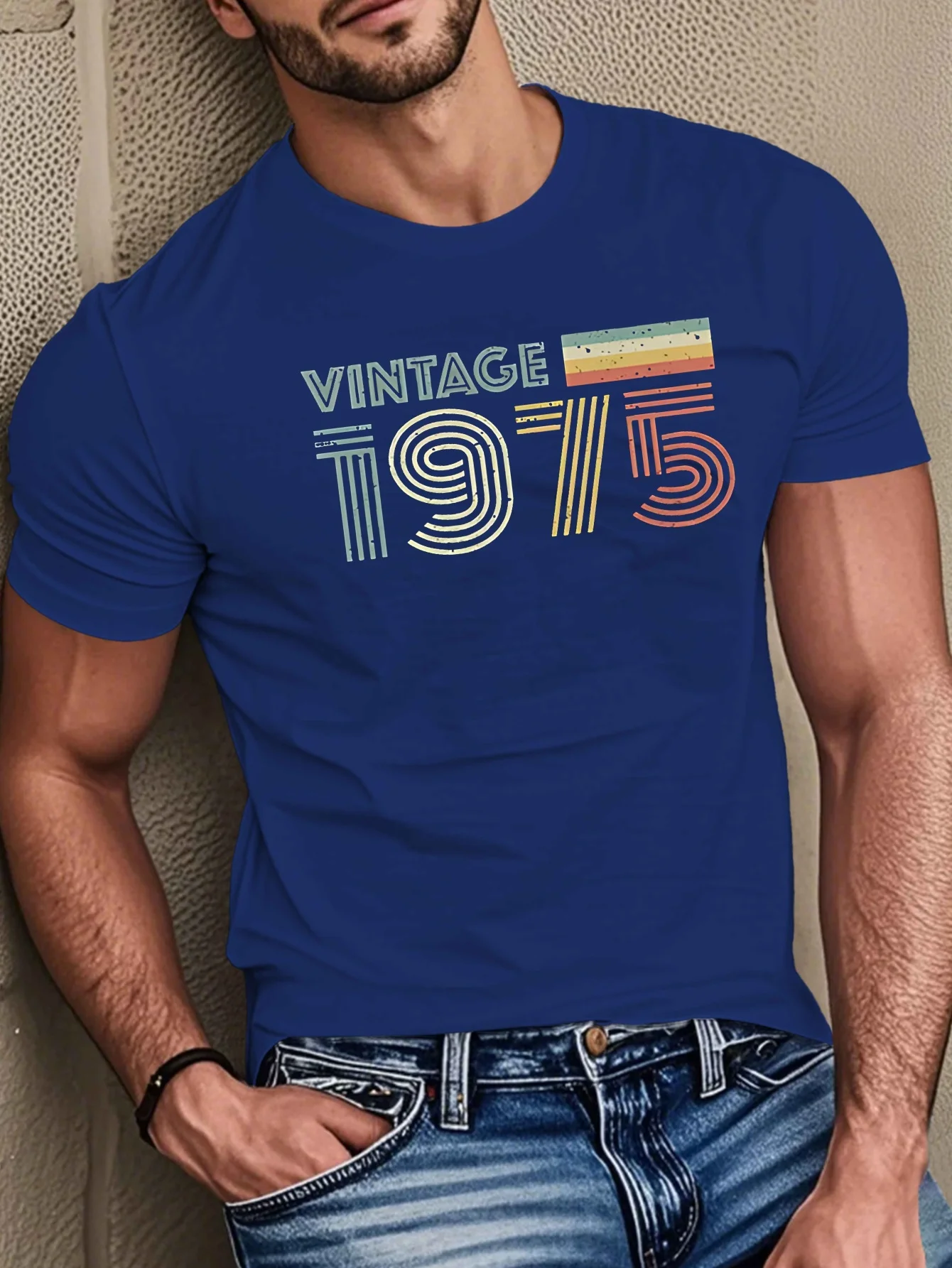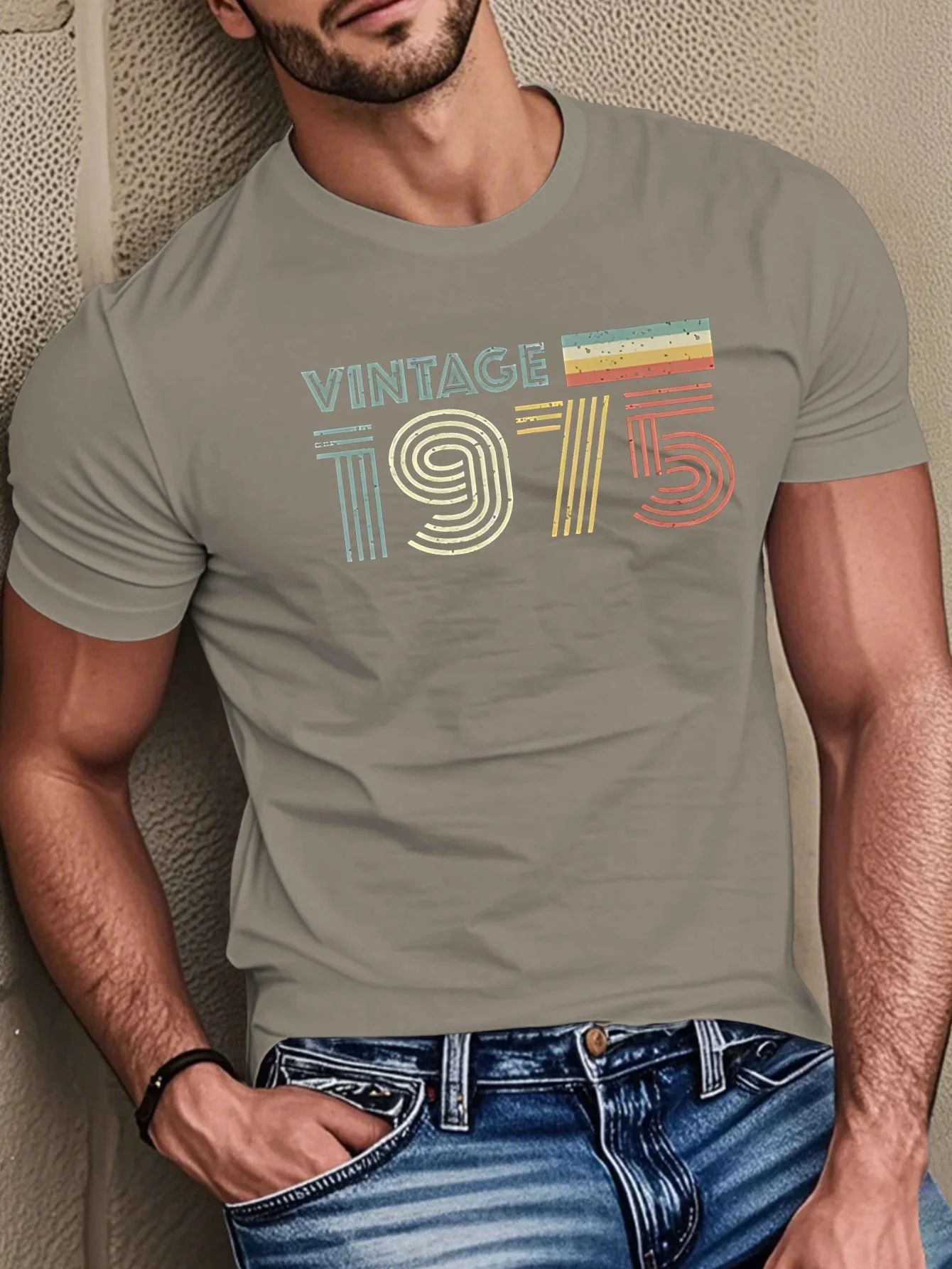 Men's summer 100% pure cotton fashionable casual loose vintage 1975 letter printed sports round neck short sleeved T-shirt top