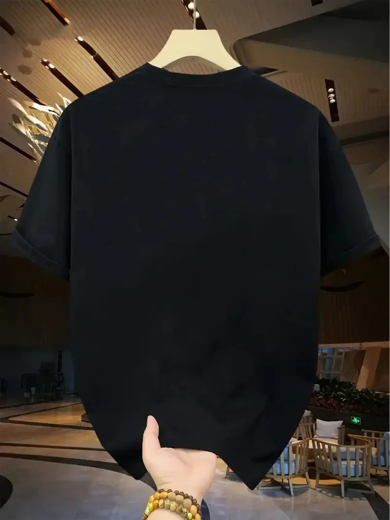 Men's summer 100% pure cotton fashionable casual sports loose edition pattern printed round neck short sleeved T-shirt top