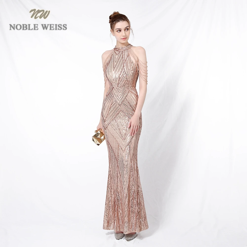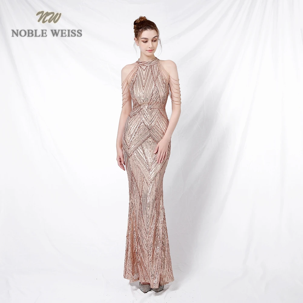 Prom Long Elegant Dresses Halter Sequin Mermaid Prom Dress Vestidos De Fiesta Evening Dresses Customized