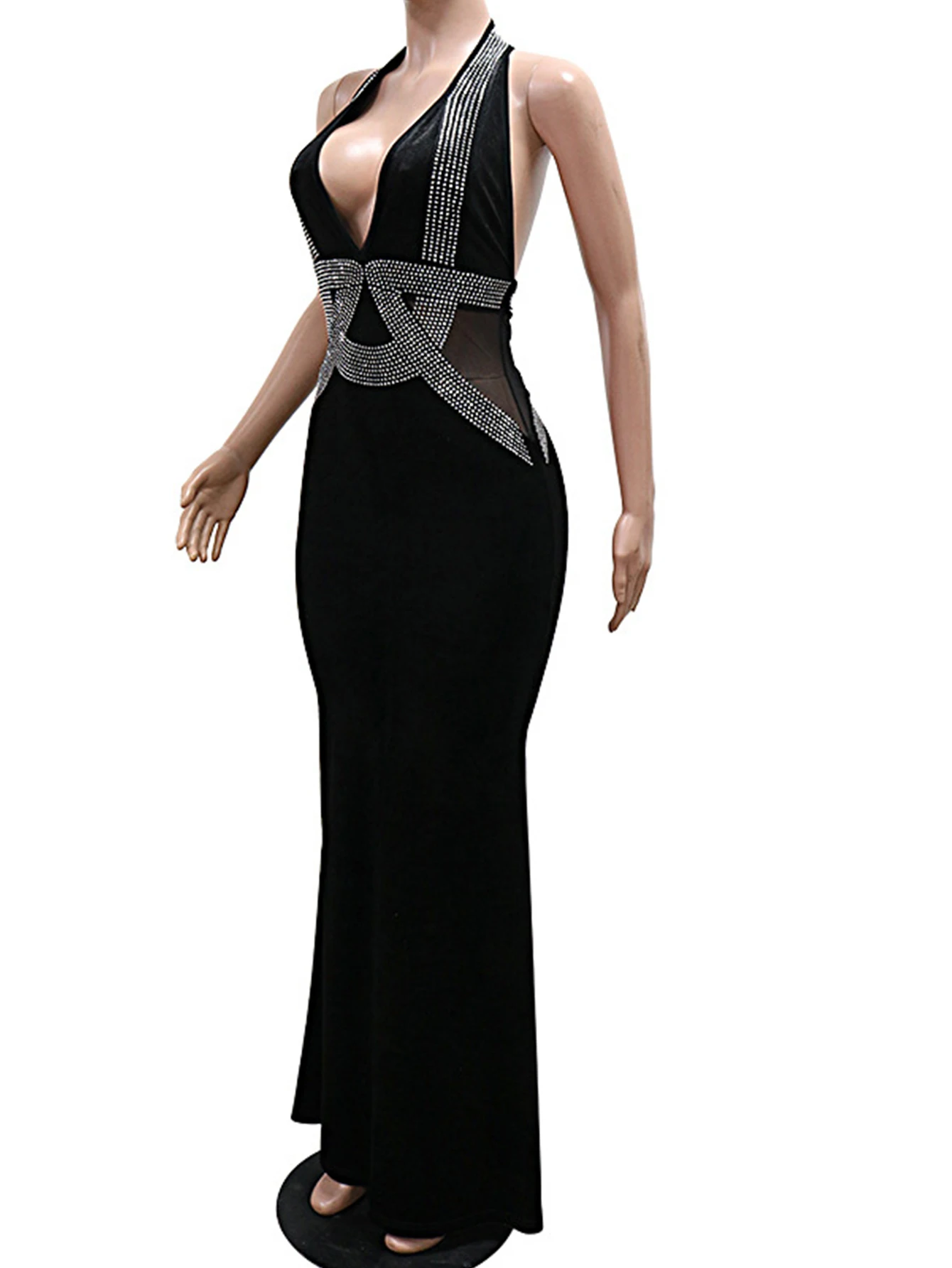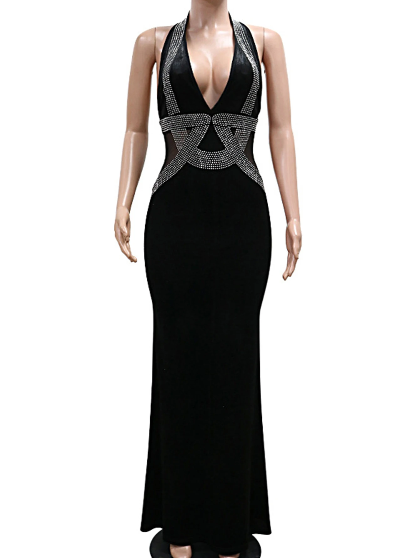 Sexy black rhinestone maxi summer dress women elegant luxury red birthday wedding party dress prom evening long dresses vestidos