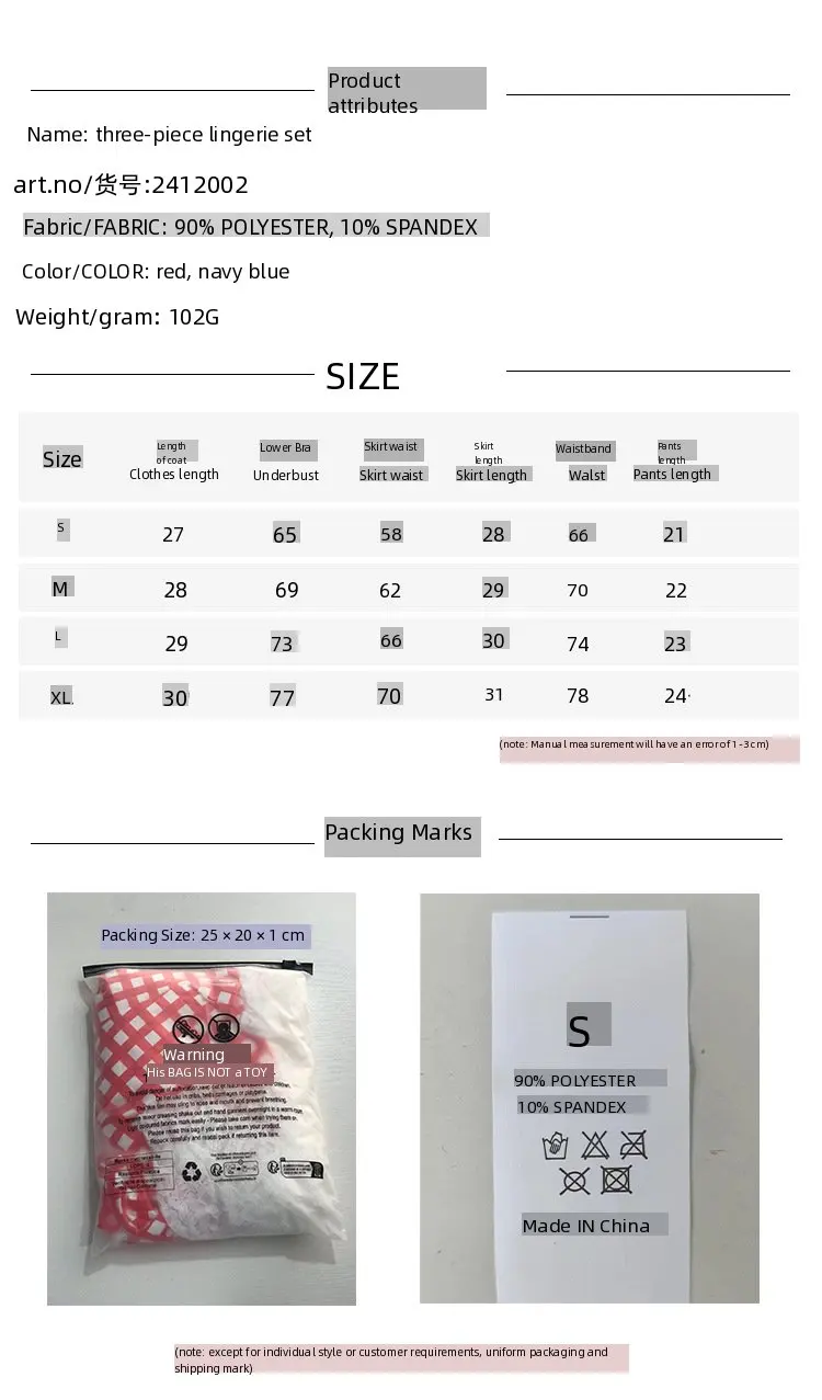 Sexy Lingerie 3-Piece Set: Lace See-Through Tempting Bra, Mini Skirt & Thong