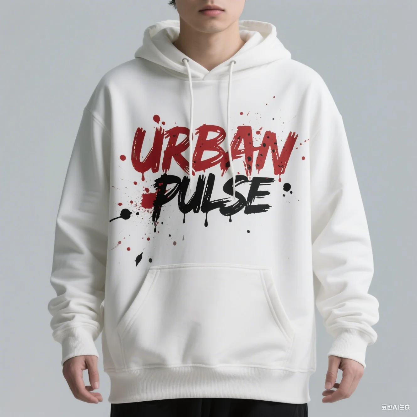 Unisex Graffiti Splatter Print URBAN PULSE 330G Hoodie with Pocket Black White Long Sleeve Casual