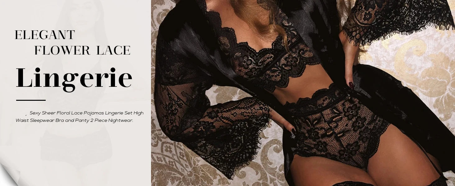 Women's sexy lingerie set, lace tulle pajamas, transparent loungewear, see-through pajamas, underwear and pants. lencerias sexy